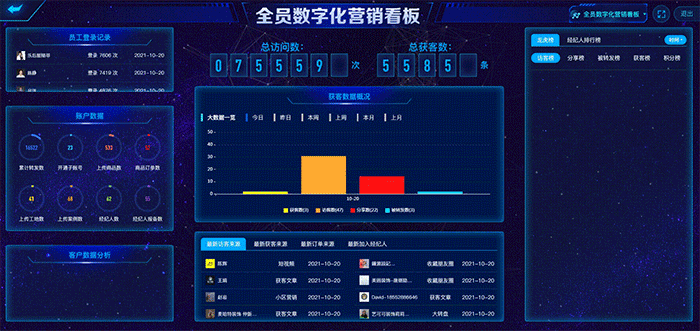 咨詢詳情通過大區(qū)還可知下面的經(jīng)銷商、門店的情況,而經(jīng)銷商、門店也可知本店內(nèi)全員的營銷獲客數(shù)據(jù)詳情。方便總部制定激勵(lì)經(jīng)銷商、門店的營銷政策、活動(dòng)政策,而經(jīng)銷商、門店也可以對(duì)導(dǎo)購的銷售數(shù)據(jù)進(jìn)行有效獎(jiǎng)懲,從而更有利于一線銷售。整套運(yùn)管系統(tǒng),包括了全員數(shù)字化營銷看板、客戶管理大數(shù)據(jù)看板、營銷活動(dòng)專屬看板、區(qū)域門店專屬看板、在施工地管理看板、龍虎榜和BOSS數(shù)據(jù)看板。