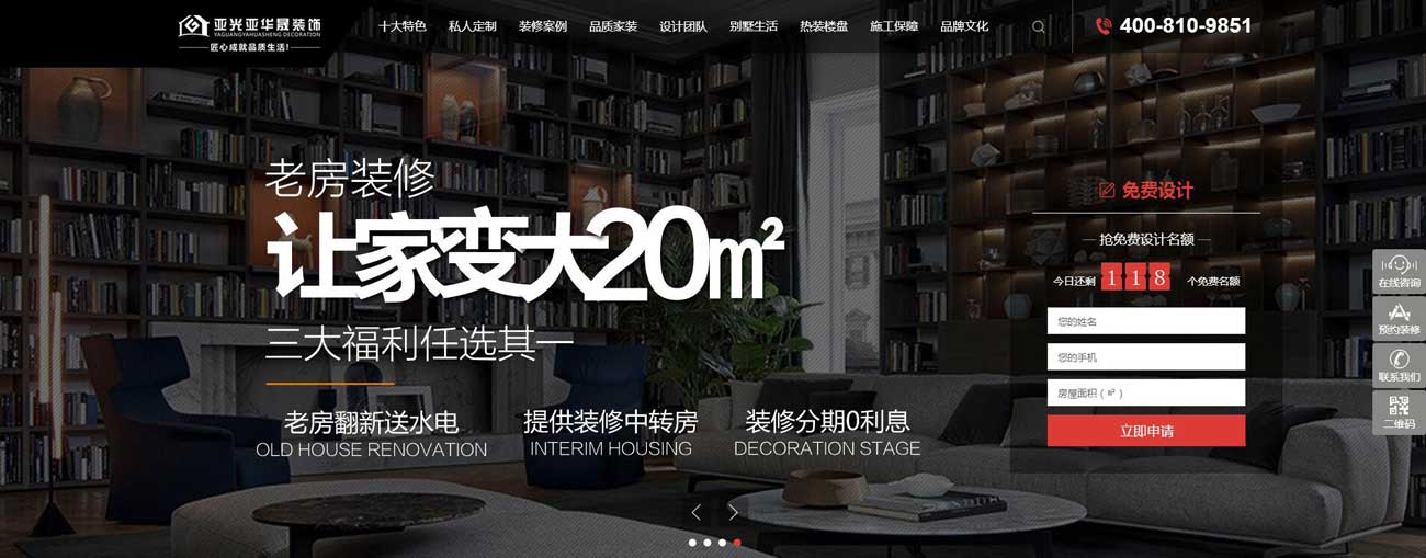 亞光亞華晟裝飾網站首頁效果展示