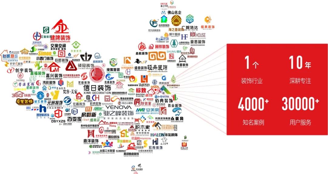 10年來服務超4000家行業客戶,包含中國TOP20連鎖裝企品牌、地方的龍頭裝飾和建材企業等。獲得了20多項軟件著作權,10多項商標專利,并成為安徽省股權交易中心科創版掛牌企業。